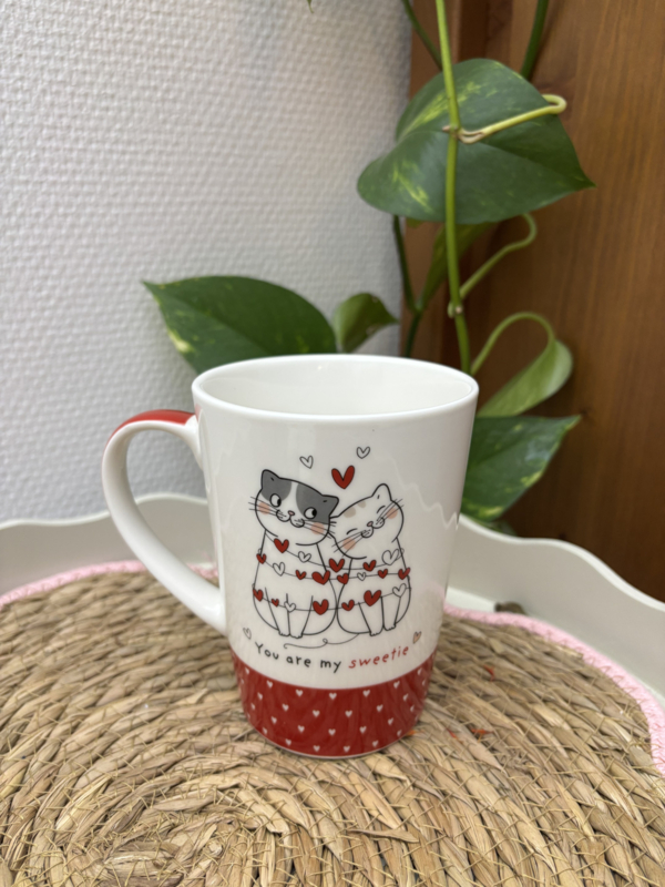 Met een leuke afbeelding van verliefde katten.