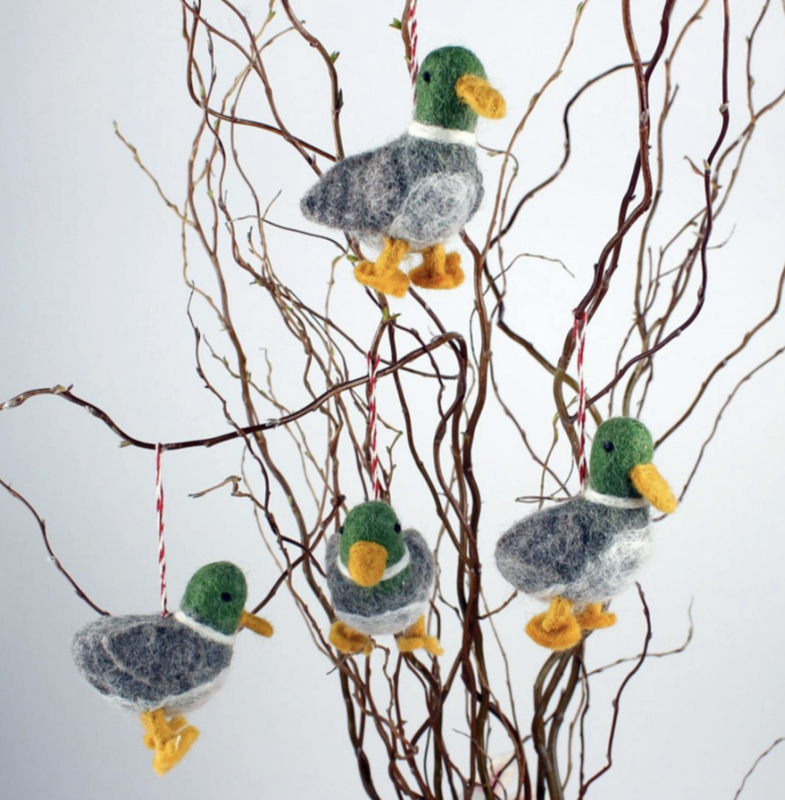 Deze vilten hanger van een eend is ongeveer 8 cm groot en is handgemaakt door vrouwen in Nepal voor Sjaal met Verhaal.