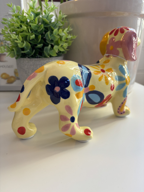 Deze teckelspaarpot komt uit de serie Blossom Bliss van Pomme Pidou. Ze worden 100% handgeschilderd waardoor ze allemaal net een tikkeltje anders zijn. Maar diegene hier op de foto is degene die je krijgt.