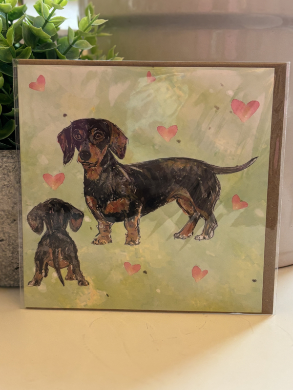 Teckel Cadeaukaartjes | Love Teckels10 dubbelgevouwen kaartjes 90x60mm