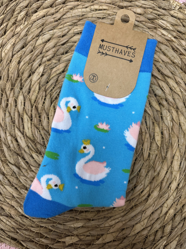 Musthaves | Zwanen Sokken | Maat 36-42Sokken met zwanen er op. Met snaveltjes en kroontjes met goud glitter.
