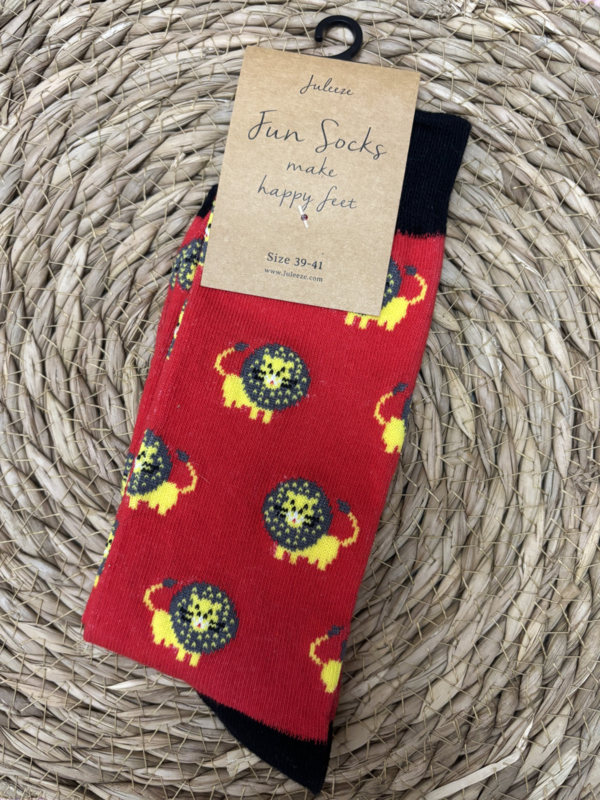 De print is erin geweven waardoor de sokken lang mooi blijven.