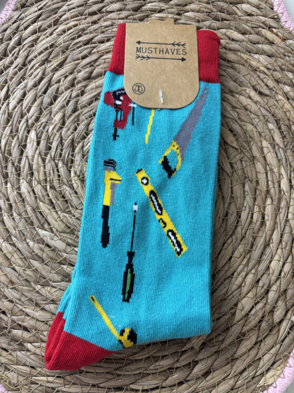 Musthaves | Gereedschap Sokken | Maat 38-45Sokken van het merk Musthaves met afbeeldingen van gereedschappen erop.
